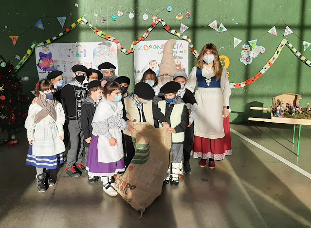 Gaur etorri zaizkigu Olentzero eta Mari Domingi eskolan antolatu diegun jaialdira. Ikasleak oso urduri zeuden noiz iritsiko zain.